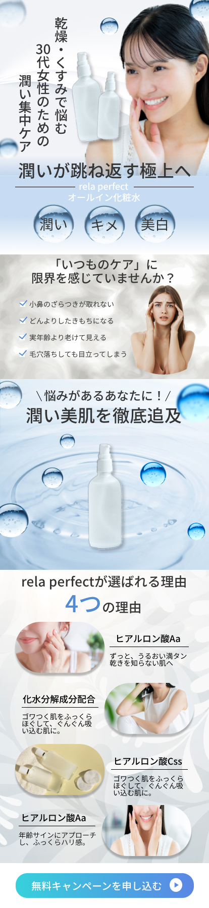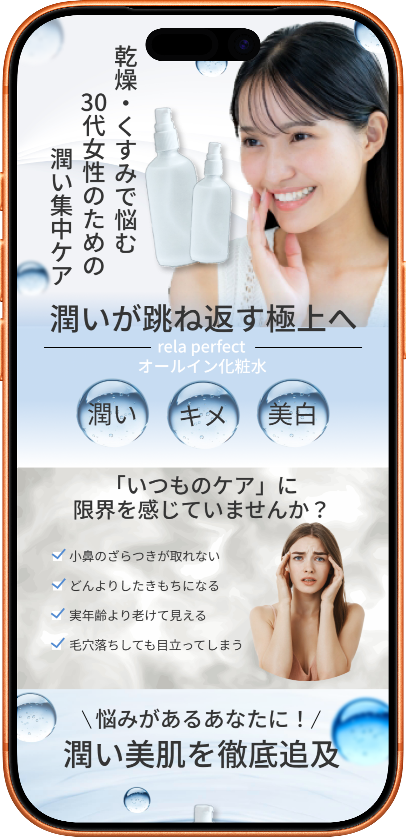 30代女性」「乾燥・くすみ」とターゲットを絞り、