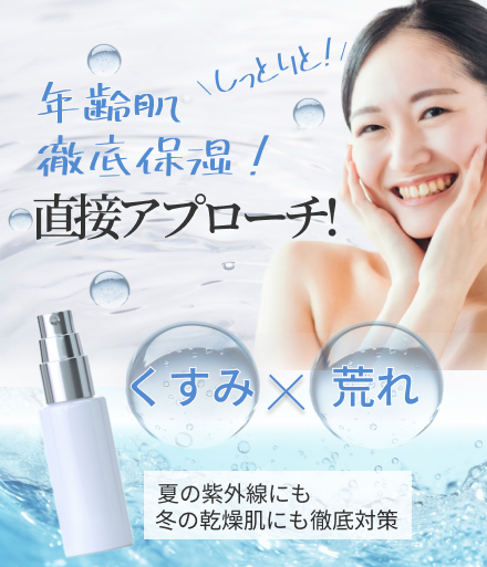 「年齢肌」や「徹底保湿」**といったコピーが筆記体に近いフォントで大きく配置され、