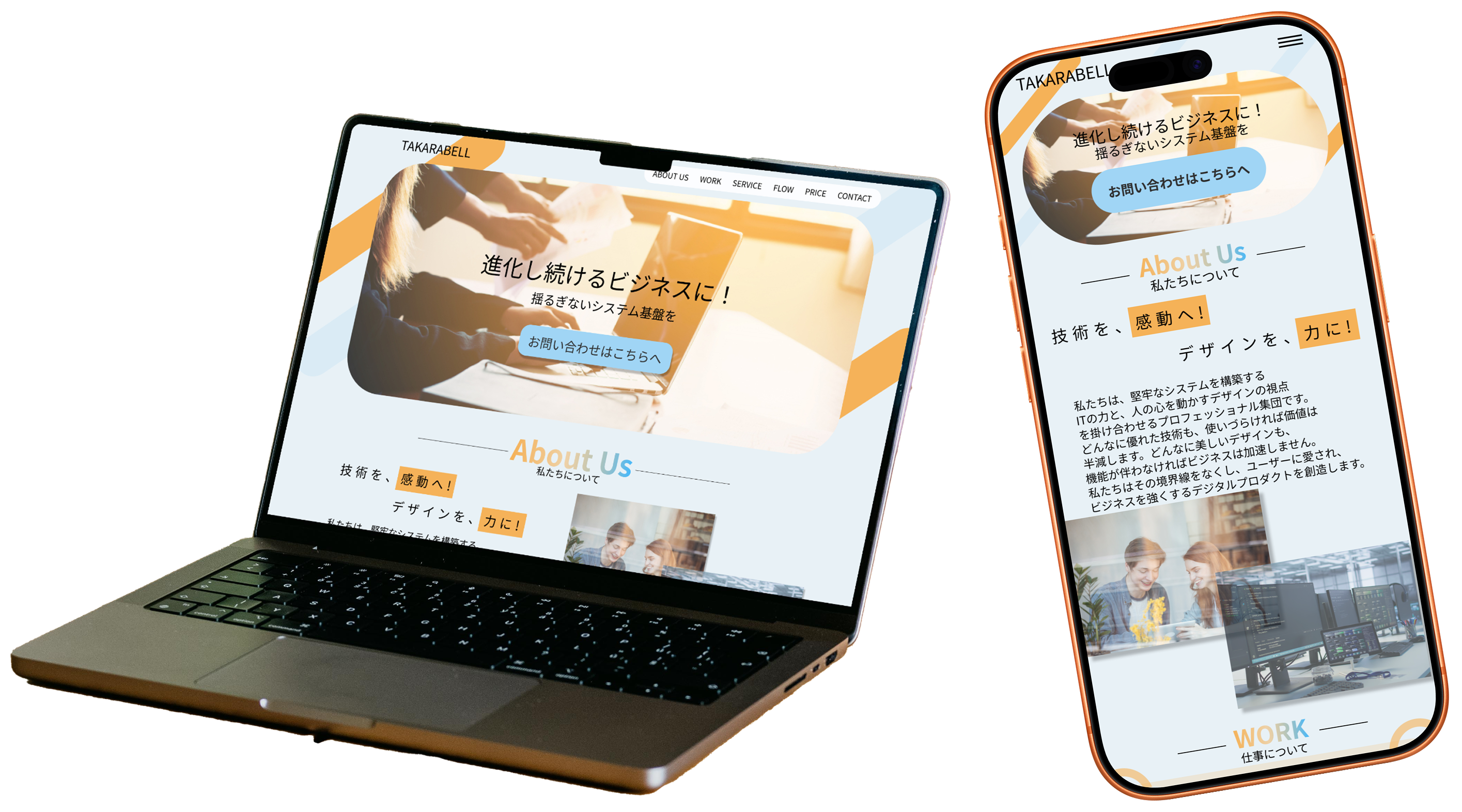 感じさせる「オレンジ」を対比させ、プロ感と温かみ